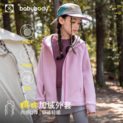 儿童加绒外套秋装2025新款女童春秋款运动连帽衫男童秋季夹克上衣