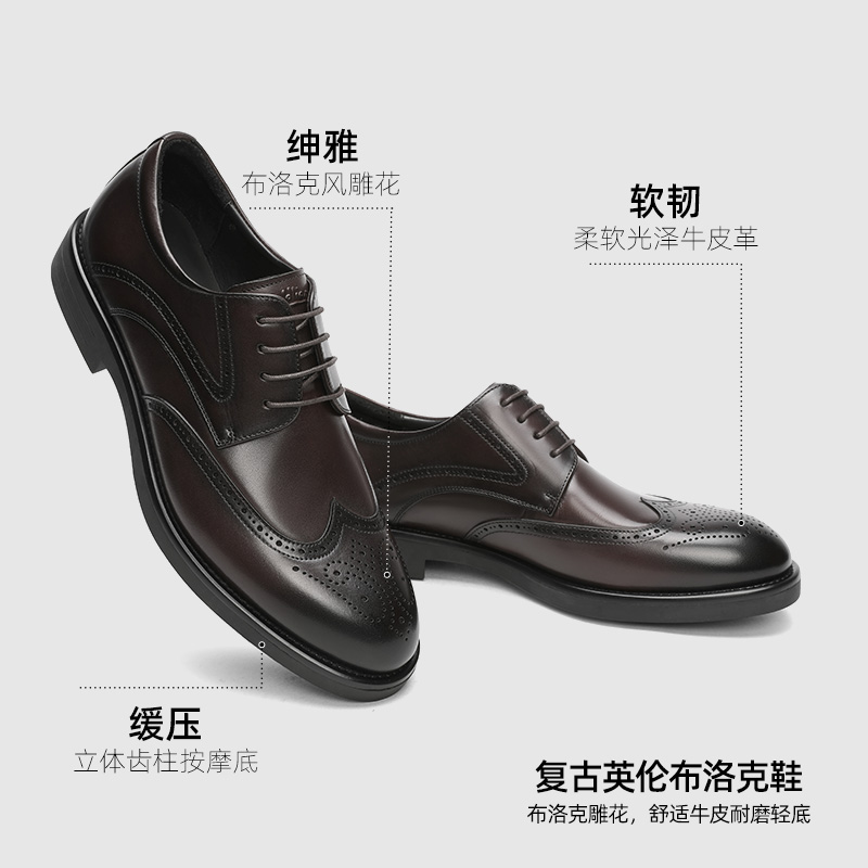 金利来男鞋官方秋季新款商务皮鞋男士布洛克鞋真皮透气新郎结婚鞋