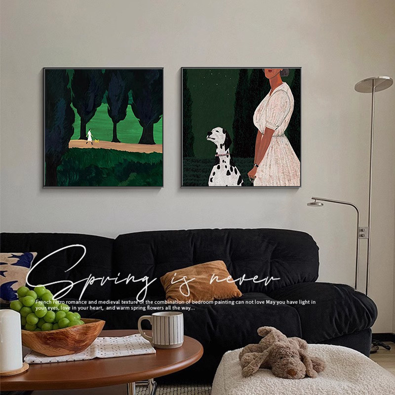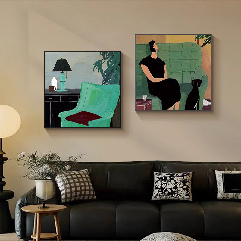 中古风客厅沙发背景墙装饰画小众卧室餐厅壁画复古抽象人物摆挂画