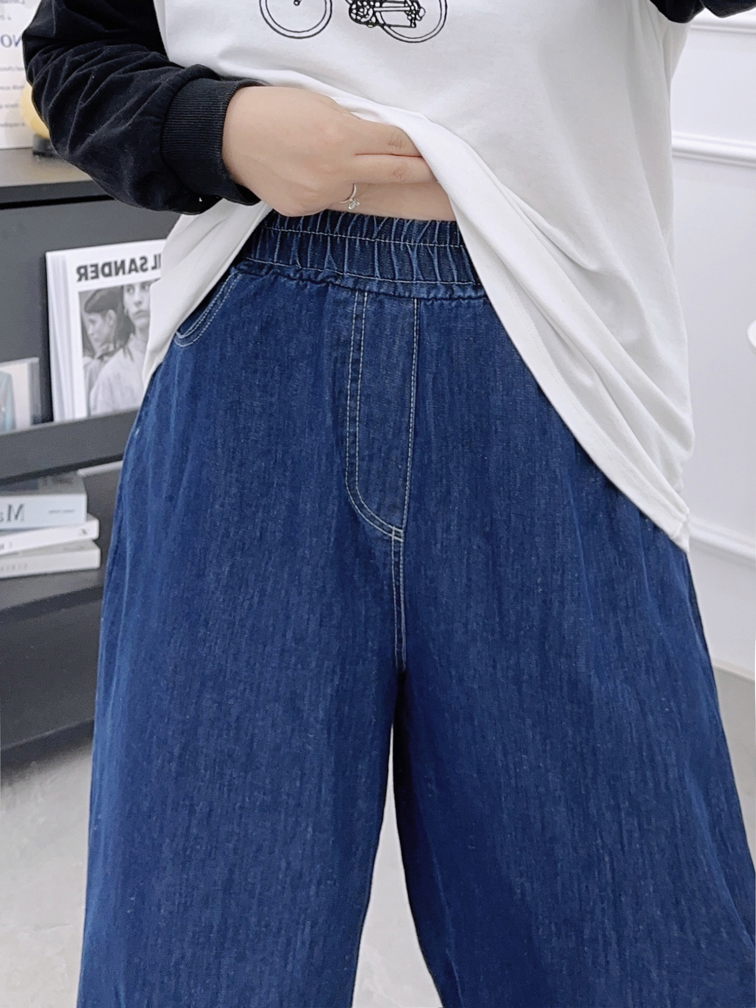 宛宛大码复古阔腿牛仔裤女春秋季胖妹妹mm松紧高腰宽松显瘦直筒裤