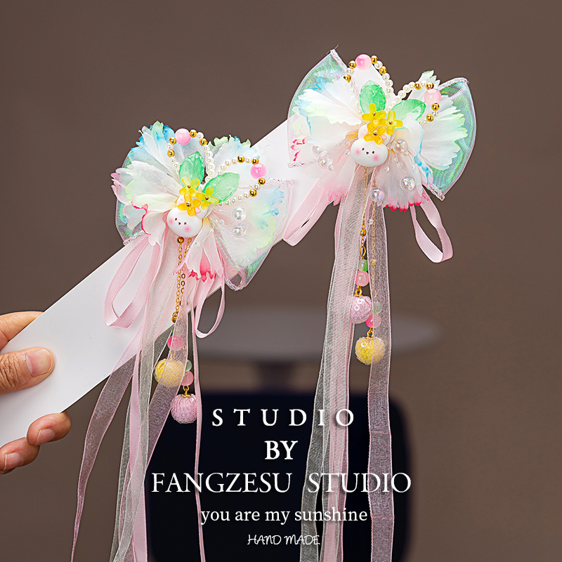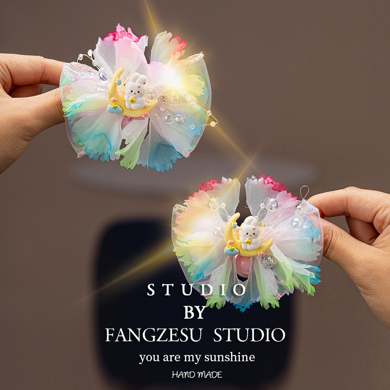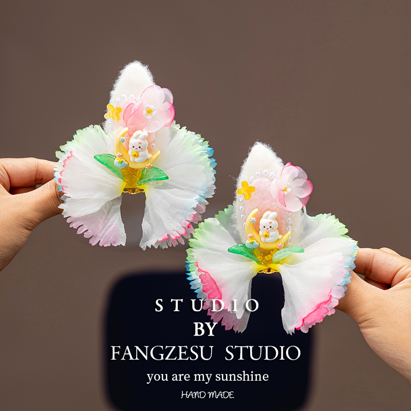 中秋节儿童古风月亮兔子对夹中国风汉服蝴蝶结发夹小女孩超仙头饰