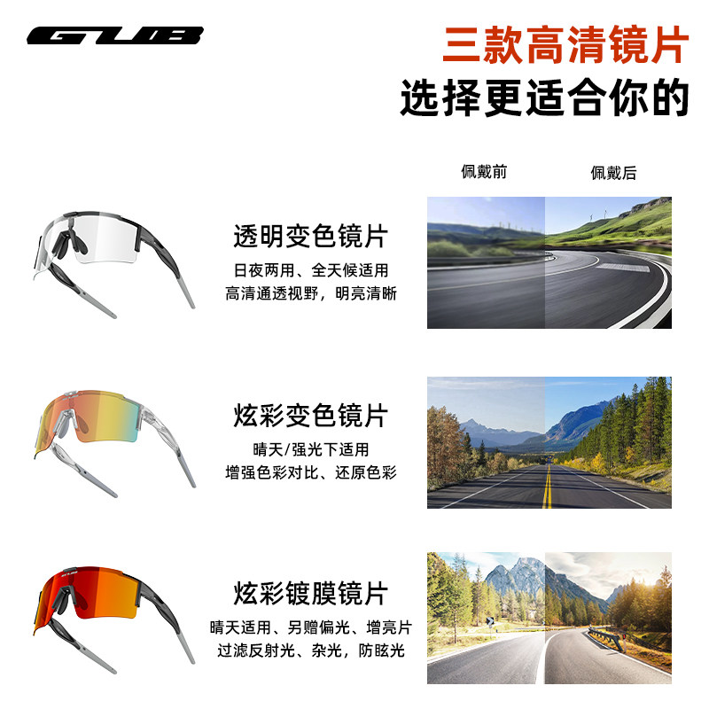 GUB透明变色骑行眼镜防风日夜风镜公路山地自行车运动跑步护目镜