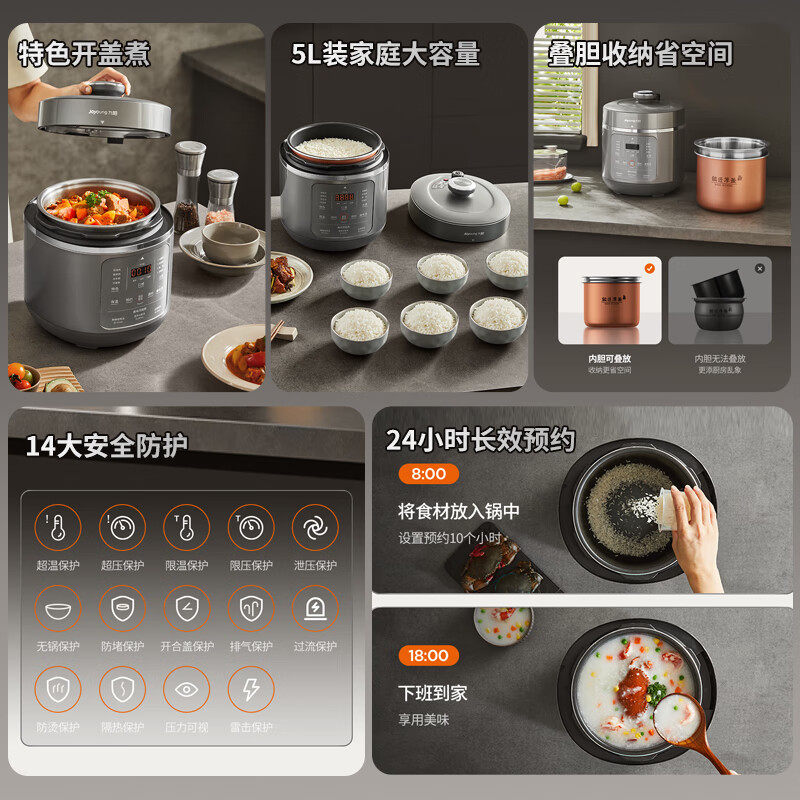 九阳电压力锅家用大容量高压锅不锈钢双胆智能定时官方旗舰50C39