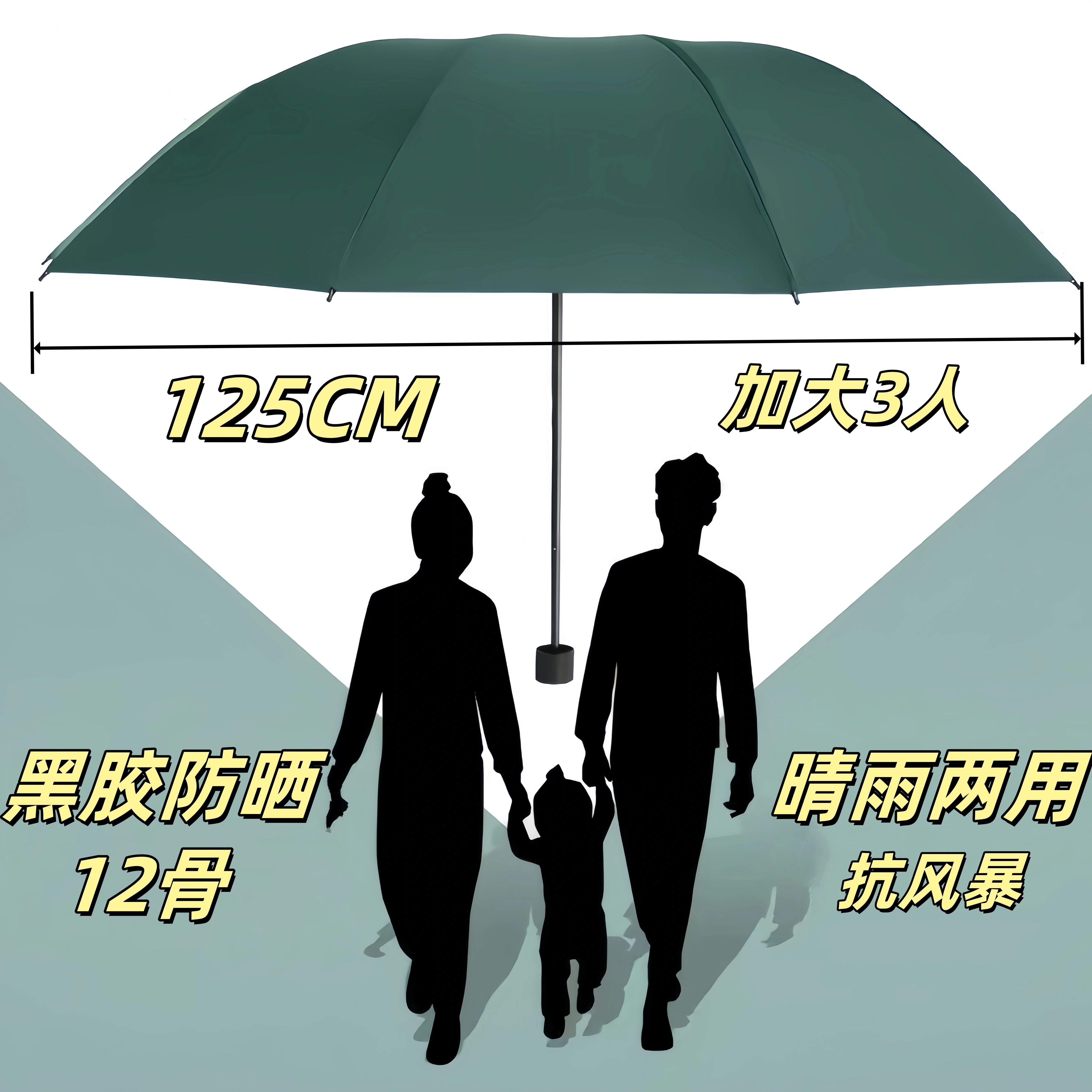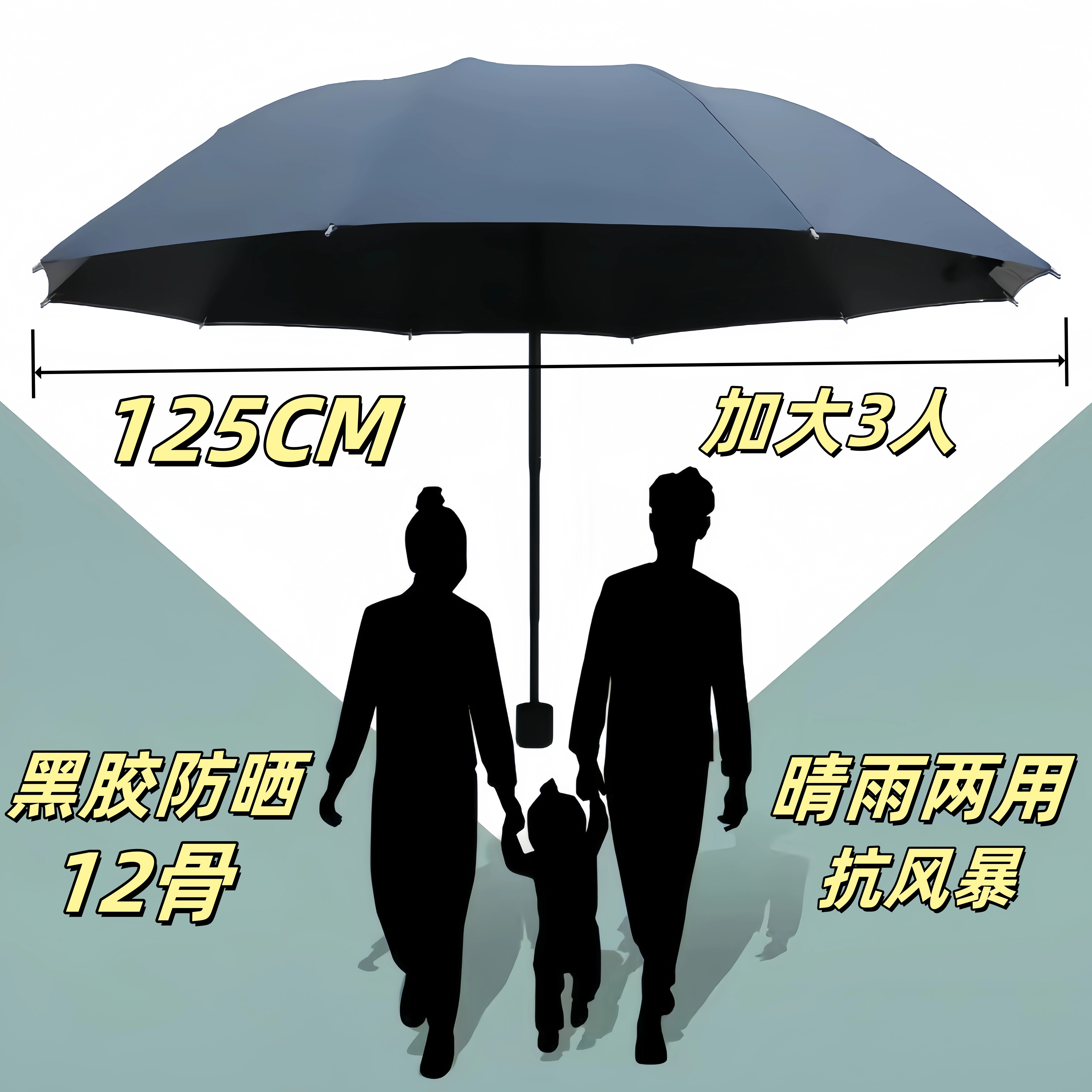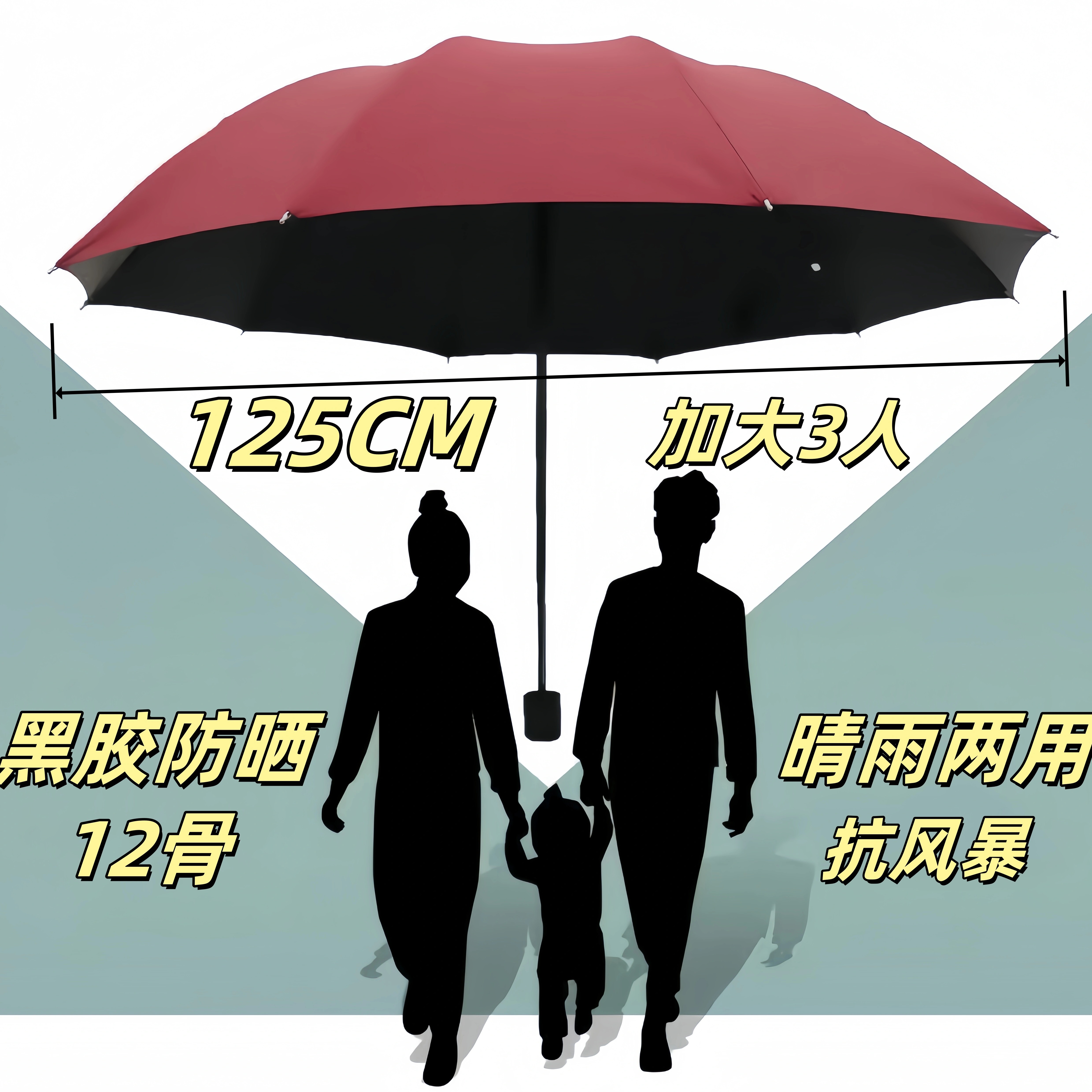 12骨广告伞logo定制雨伞加大商务黑胶晴雨伞三折伞防嗮折叠太阳伞