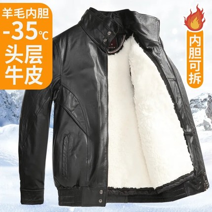 男士摩托车头层牛皮外套中老年加棉宽松秋冬季皮夹克机车真皮皮衣