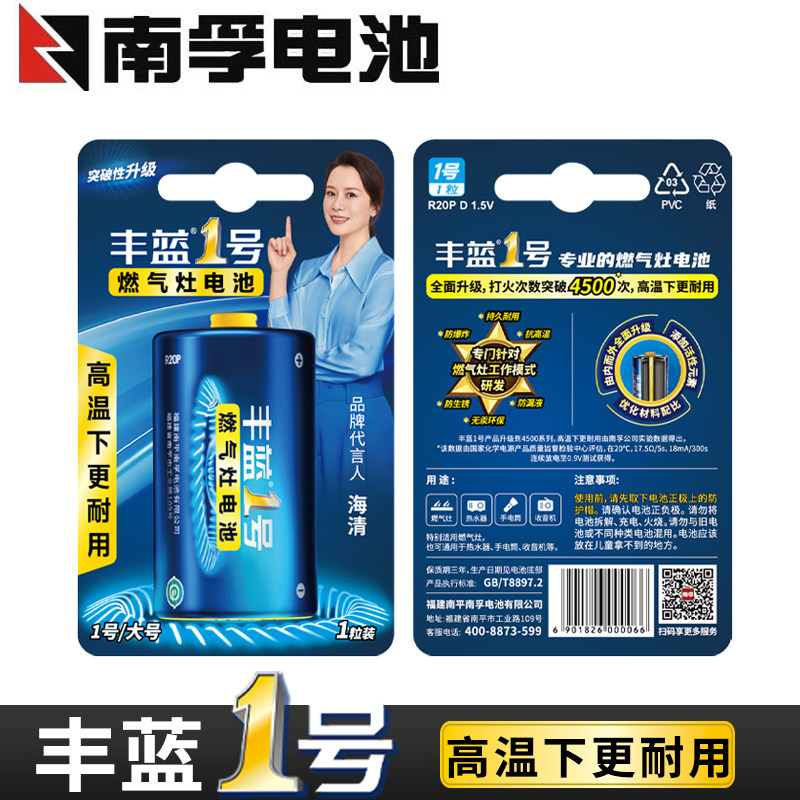 南孚丰蓝1号电池大号一号老式燃气灶电池电子秤热水器专用D型R20P