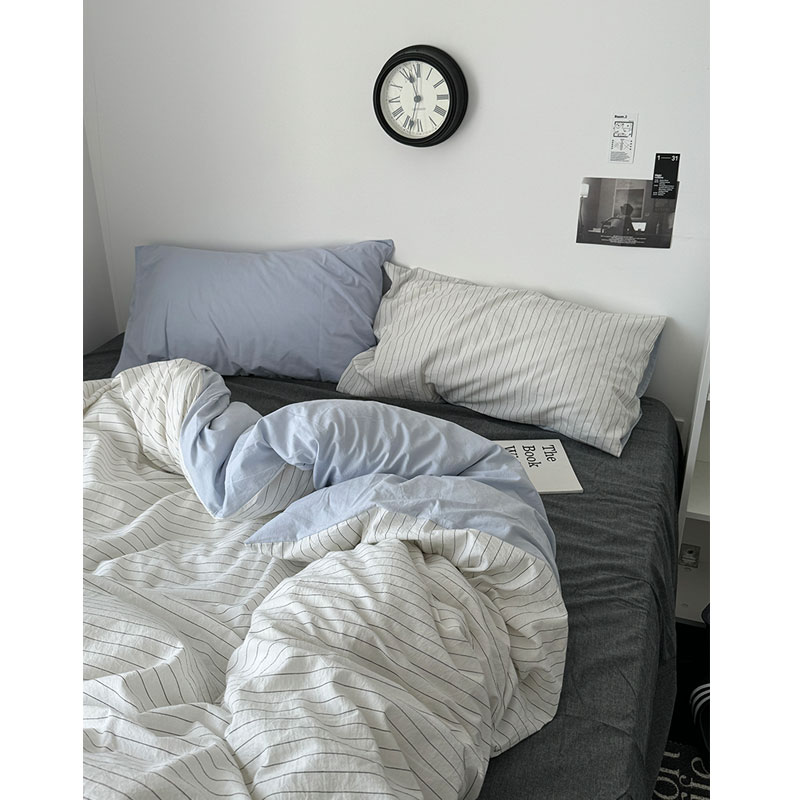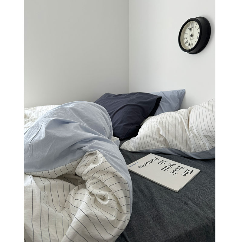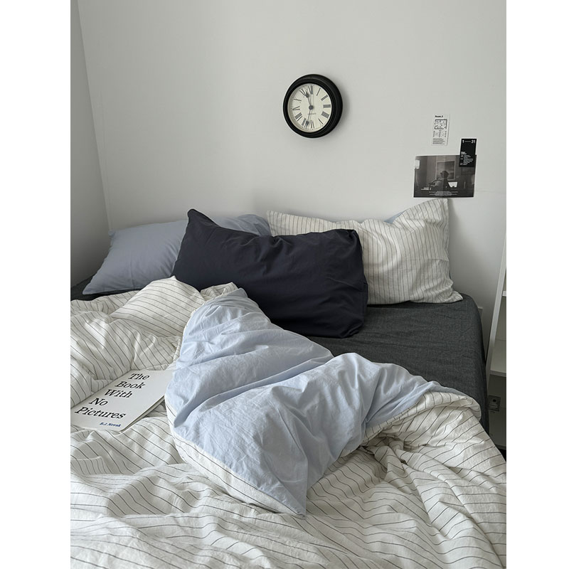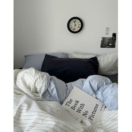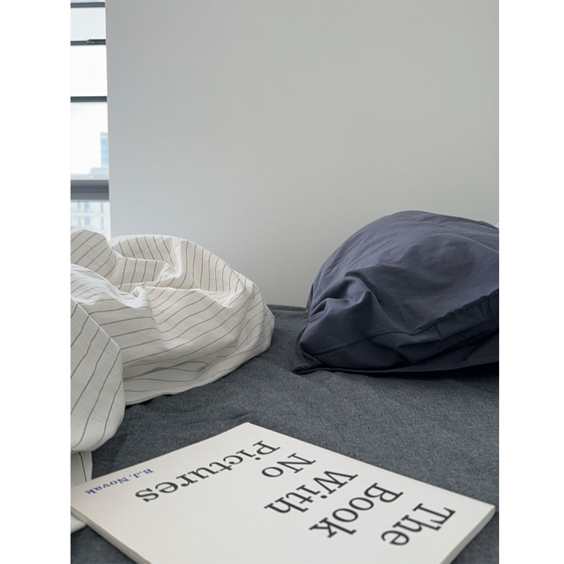 蓝色的肖邦/Nordic北欧色织条纹冰岛蓝全棉床单四件套床笠三件套