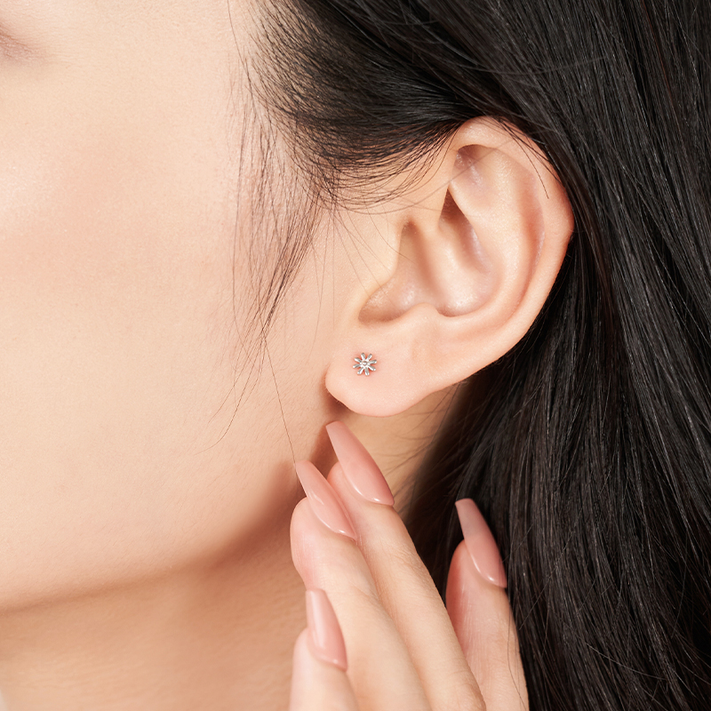 明牌珠宝铂金PT950雏菊耳钉 时尚简约小花朵耳饰养耳棒BFH0117