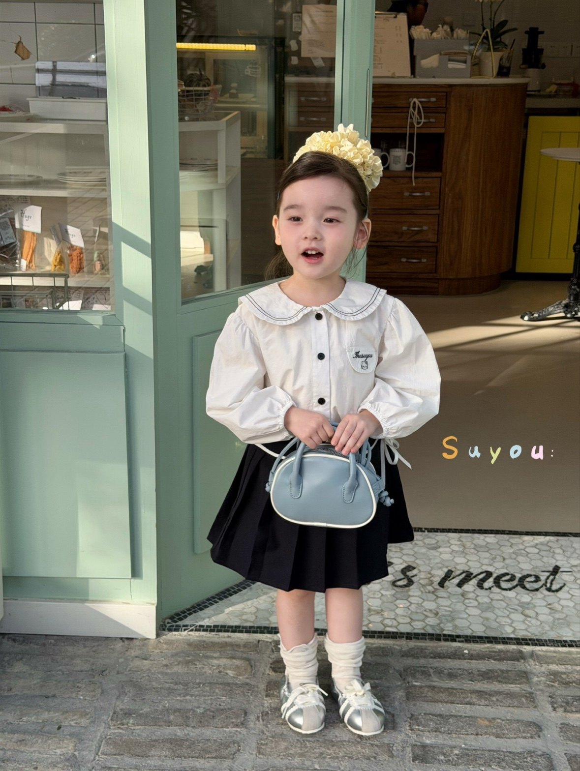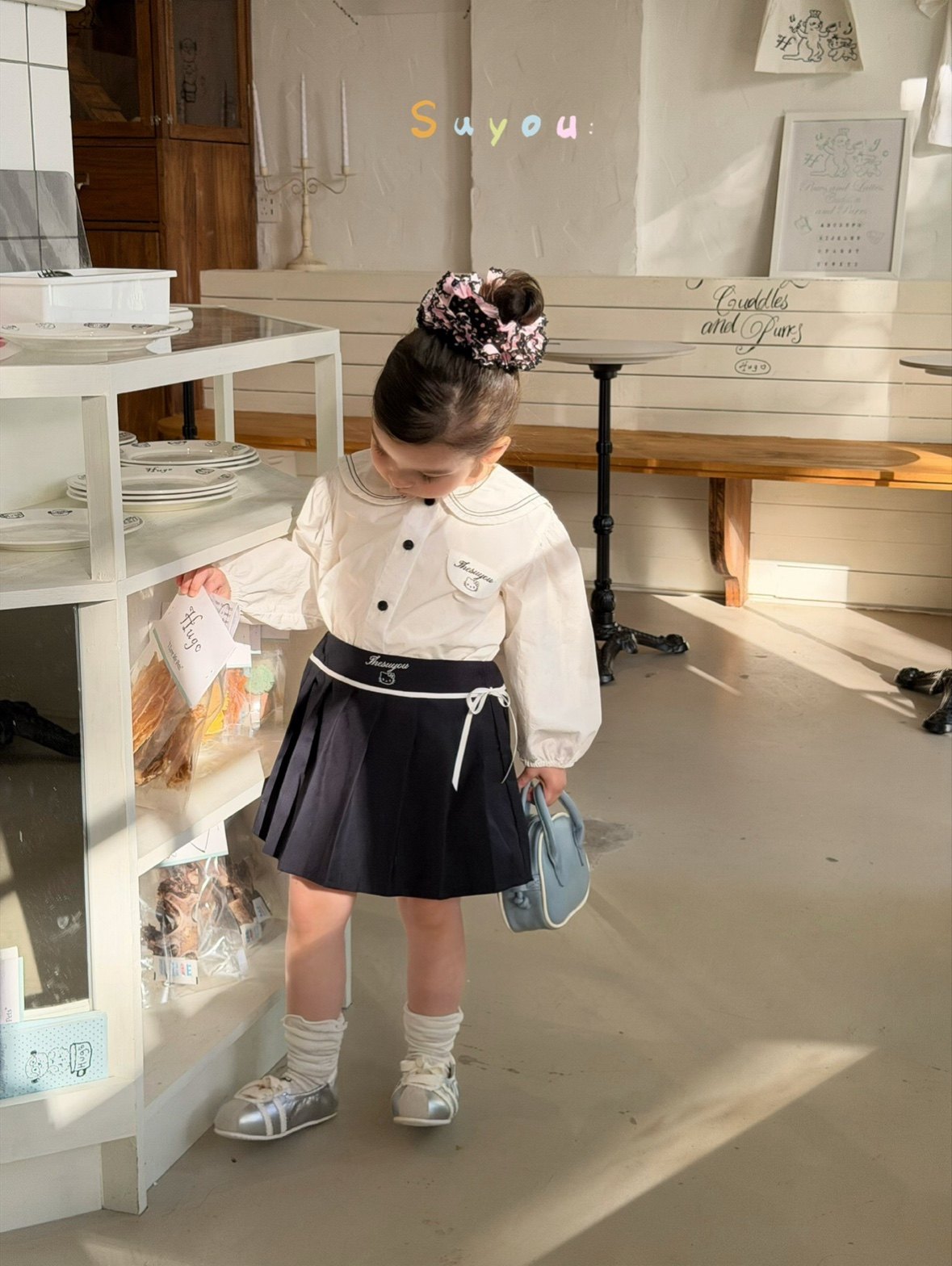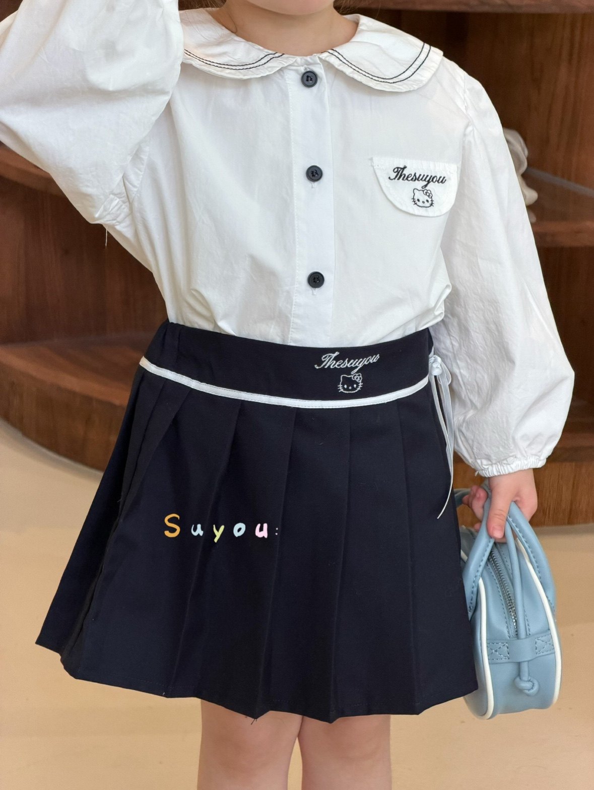 凡妈童装2026春款女童小童韩版KT猫刺绣娃娃衫衬衫半裙套装两件套