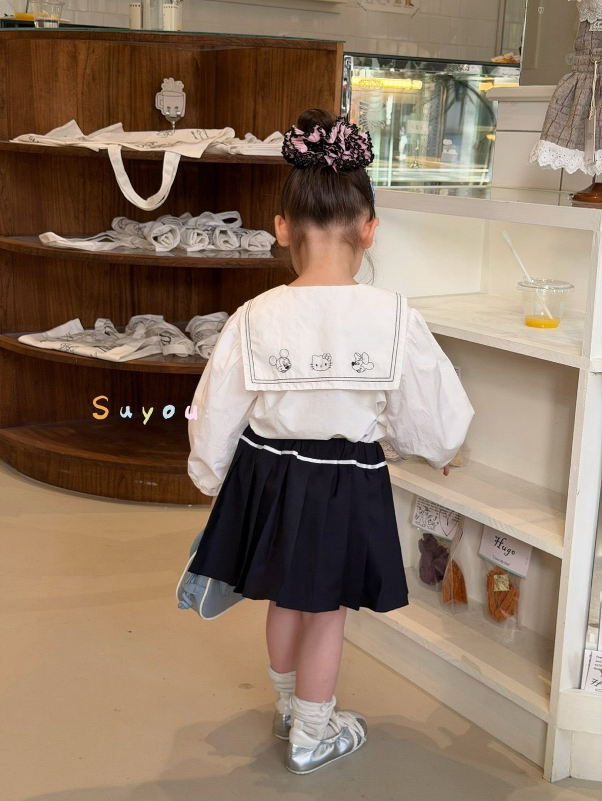 春款女童KT猫刺绣娃娃衫半裙套装