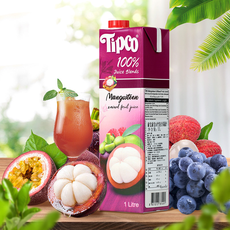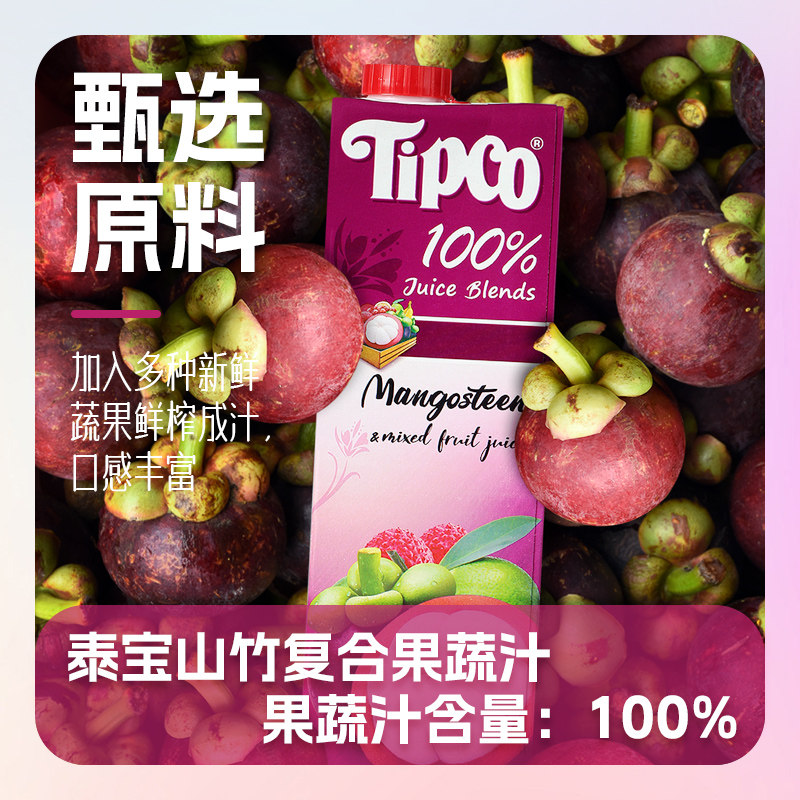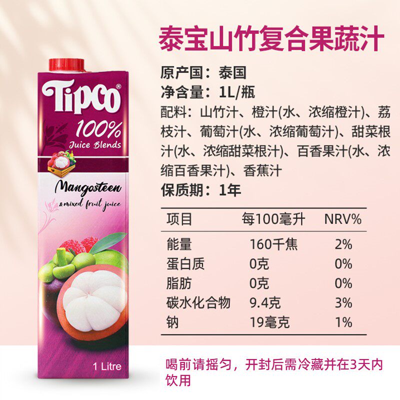 泰国进口tipco泰宝山竹果汁7种果蔬汁饮料1L*2大瓶0脂无添加饮品