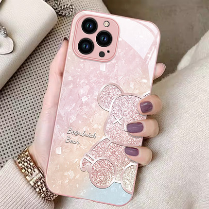 适用苹果15Promax手机壳14新款13mini全包iphone12玻璃11创意钻石小熊XR奢华女8plus防摔6s保护套7可爱SE23潮