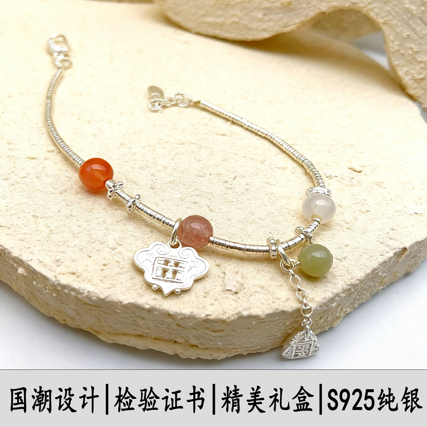 纯银平安锁手链女款轻奢手串小众国风足银饰品送女友闺蜜生日礼物