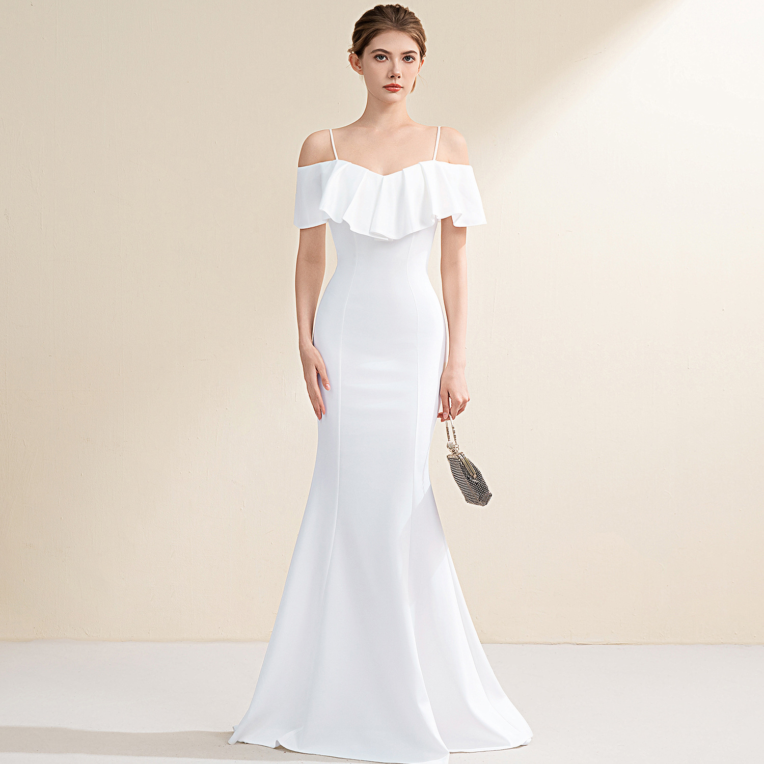 晚礼服裙女高端气质轻奢感名媛宴会一字肩长款吊带鱼尾连衣裙