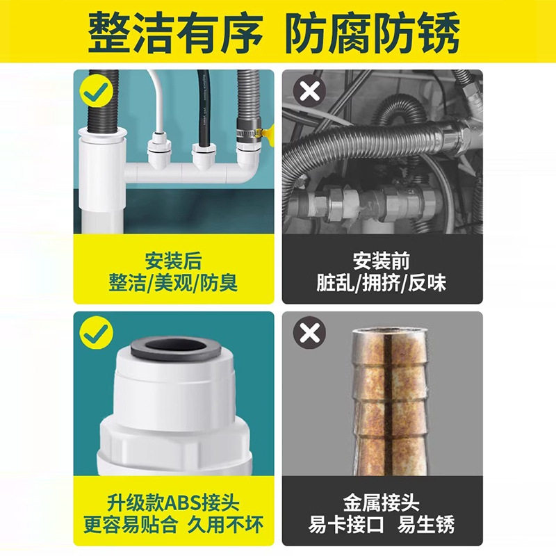 厨房下水管净水器三通接头防臭神
