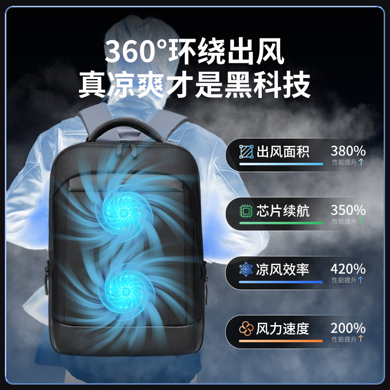 AIBAG风冷散热风扇背包男士双肩包商务出差通勤包17寸防水电脑包