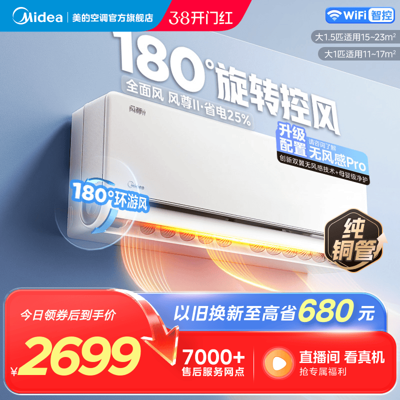 美的风尊二代PRO空调1.5匹2匹一级变频冷暖家用官方正品大挂机