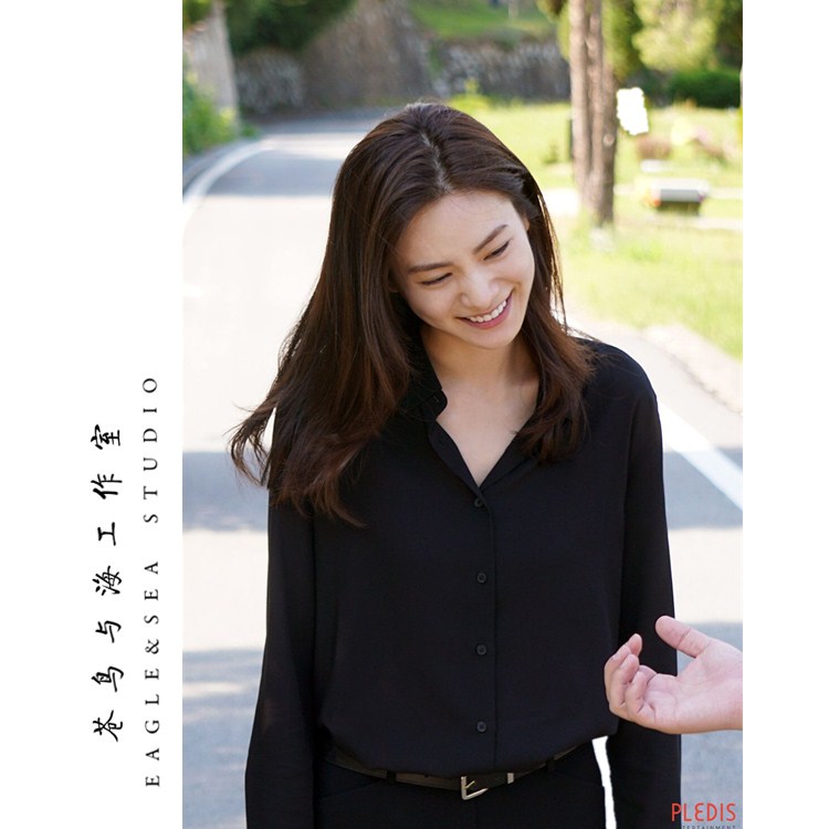 「气质基础款」韩版简约职业通勤黑色长袖宽松雪纺衬衫女衬衣春夏