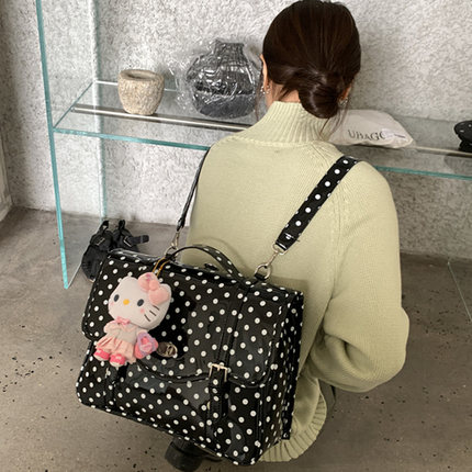 肥肥自制韩版可爱波点双肩包女大容量百搭漆皮PU手提单肩斜挎双肩