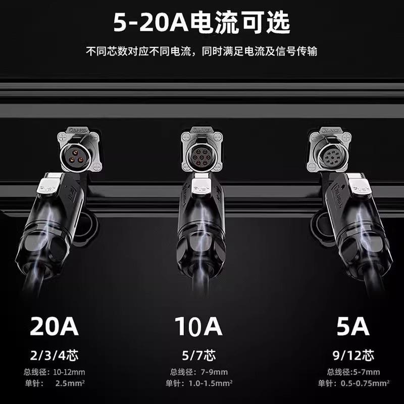 凌科LP20工业航空插头2/3/4/5/7/9/12/14芯大功率防水公母连接器