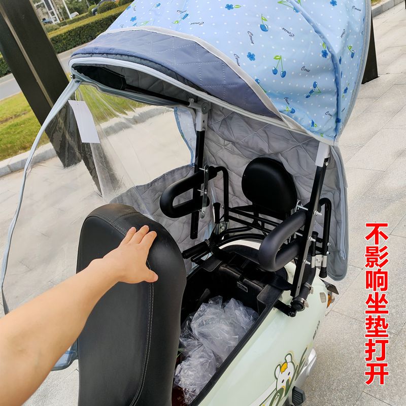 电动摩托车儿童座椅棚后置宝宝踏板电瓶车安全坐椅围栏保暖防雨棚