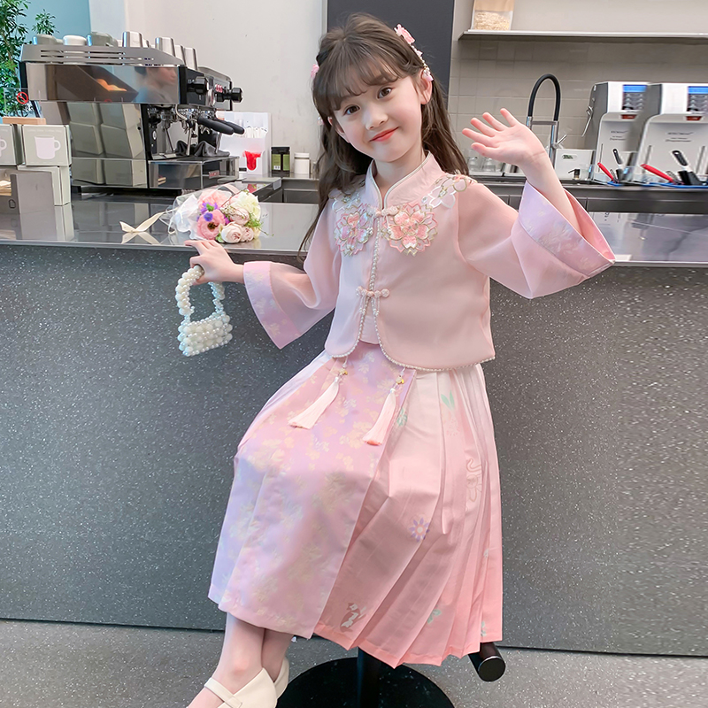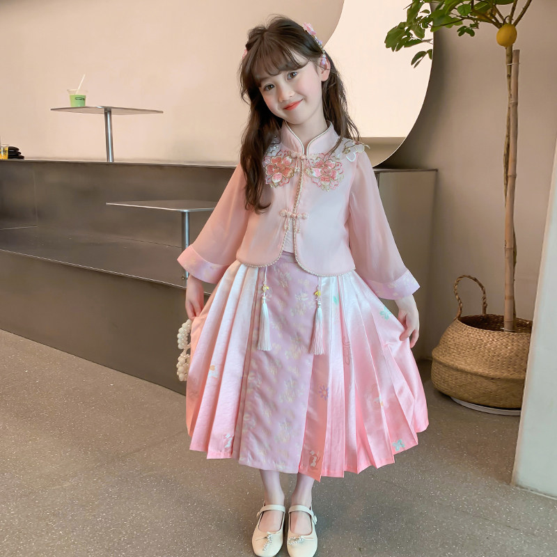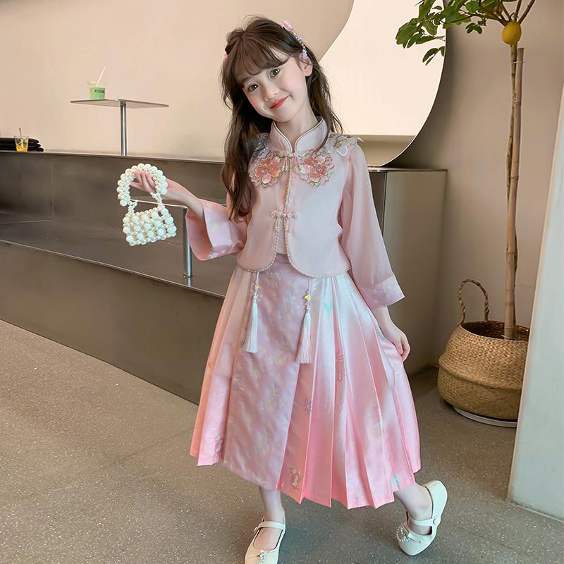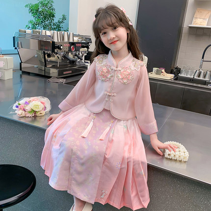 女童秋装套装2025新款儿童汉服新中式国风马面裙两件套春秋款古装