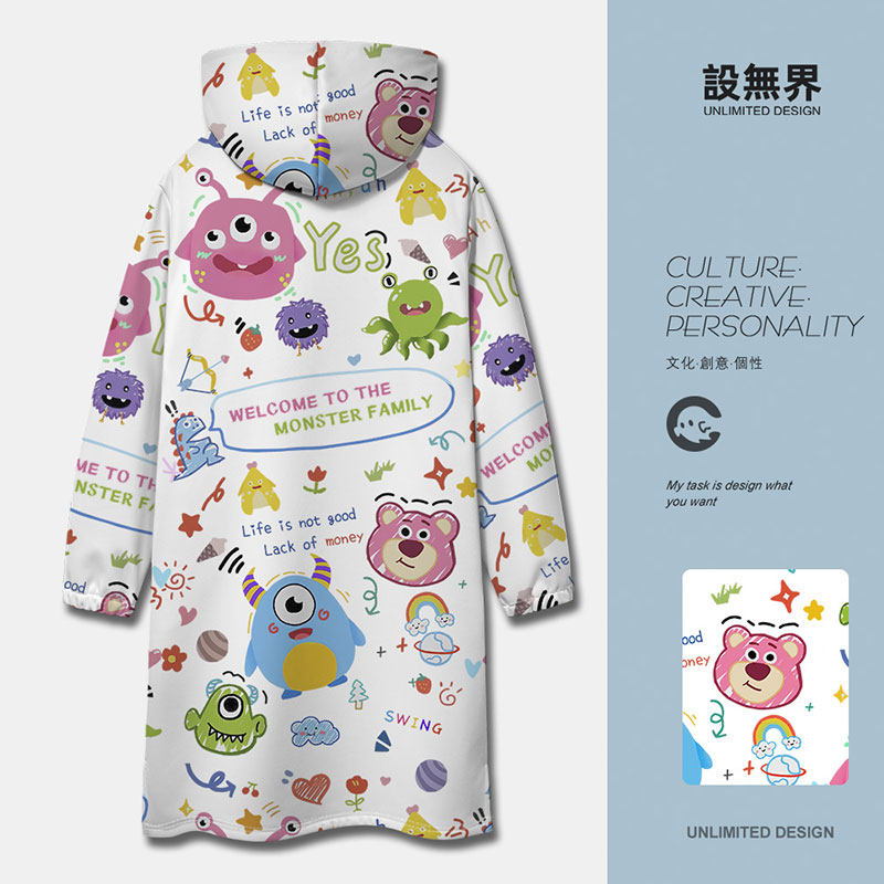 卡通动漫怪兽家族草莓小熊涂鸦中长款卫衣裙女春秋季0017设 无界