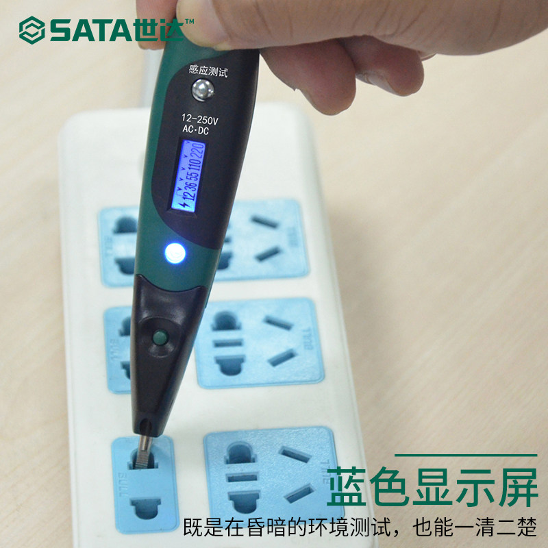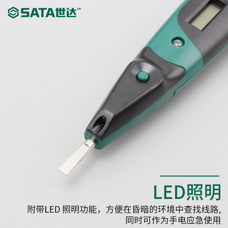 世达工具测电笔电工工具验电笔双色带照明灯数显感应测电笔62602