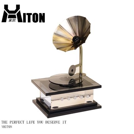 现代轻奢水晶播放机复古留声机摆件玄关样板间创意客厅唱片机饰品