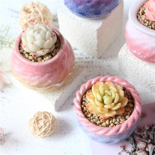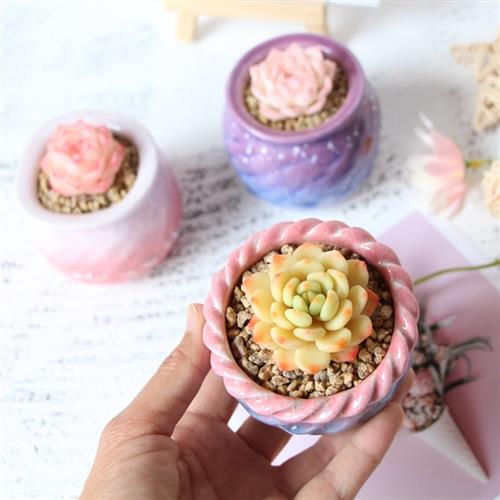 景德镇糖果冰裂马卡龙小号手捏控型麻花陶瓷可爱创意多肉植物花盆