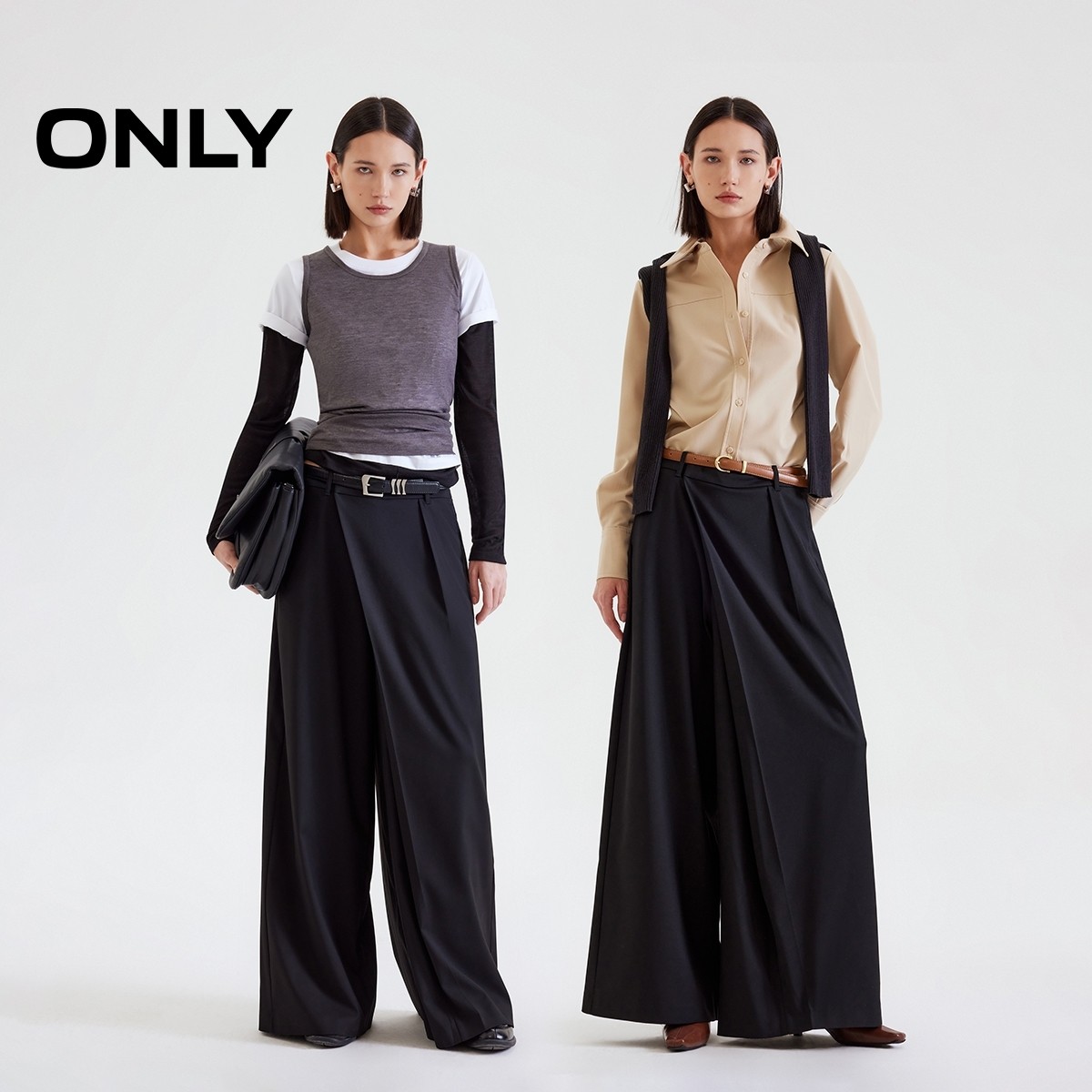 绫致ONLY2026春季新款垂坠感西装面料宽松直筒裤长裤休闲裤女