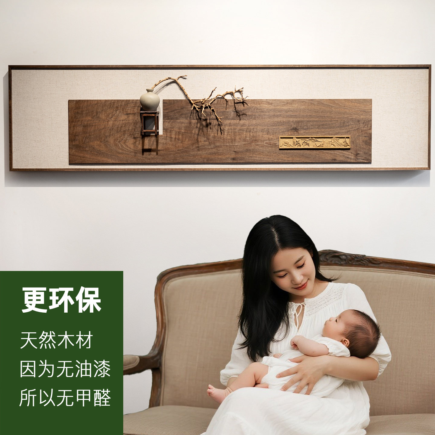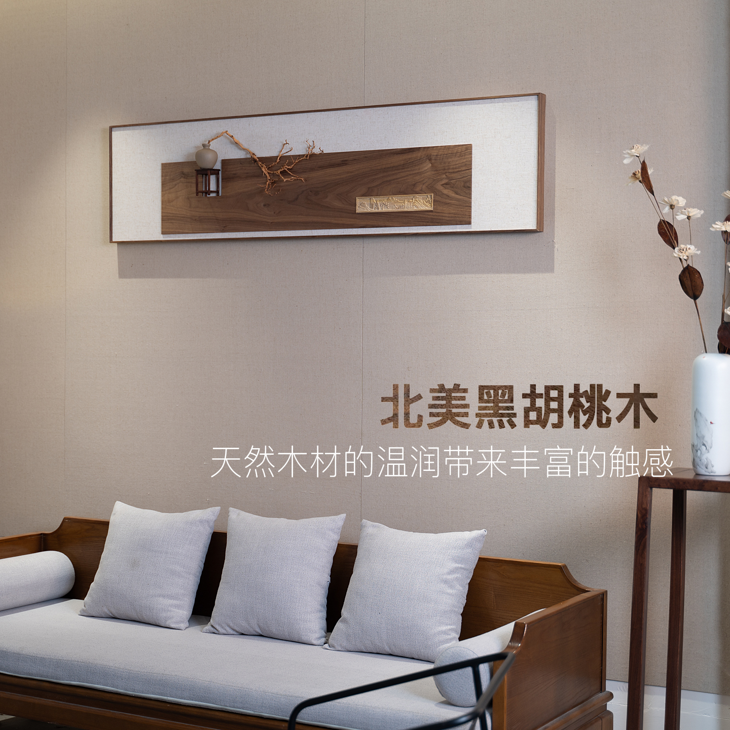 创意设计客厅沙发背景墙上墙面装饰胡桃木装饰挂件墙饰壁饰实物画