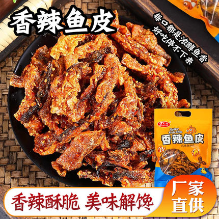 香辣鱼皮甜辣酥炸鳕鱼海鲜零食250g开袋即食麻辣脆鱼皮干爆款小吃