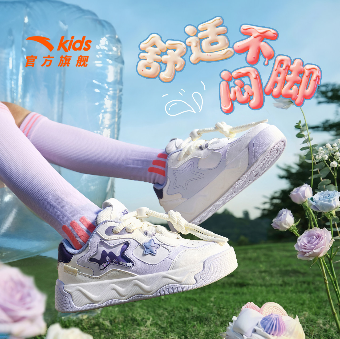 奶昔丨安踏儿童板鞋女童鞋2026春季新款校园小白鞋儿童运动鞋滑板