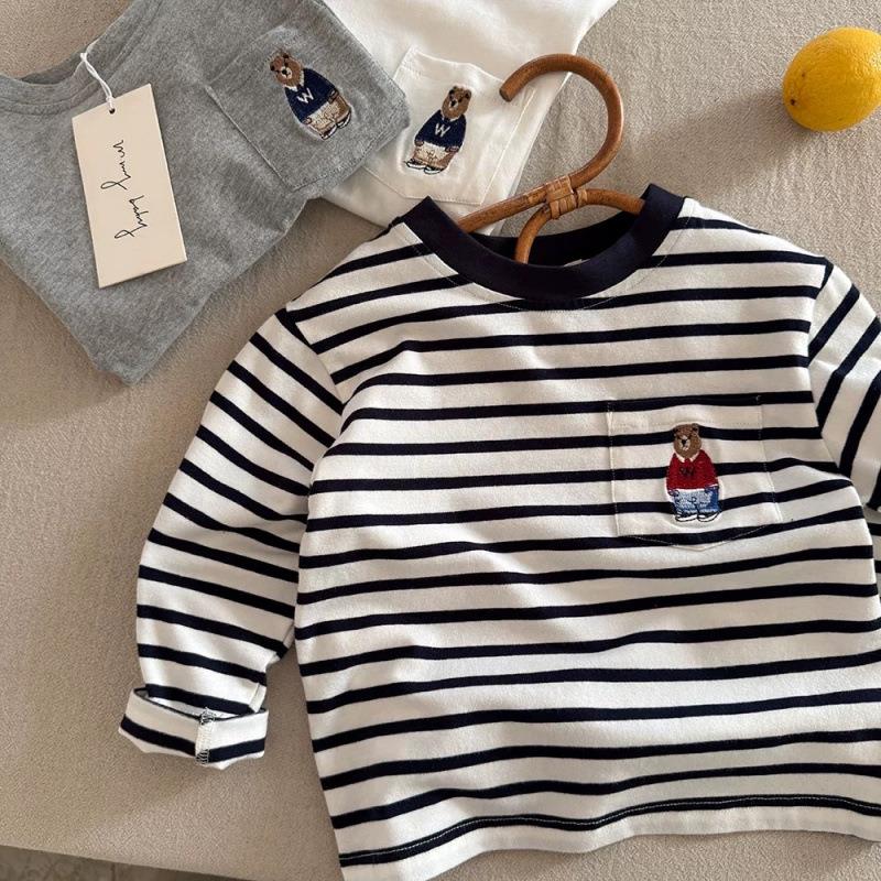 儿童长袖T恤春秋新款男女童上衣潮流宝宝卡通打底衫洋气条纹棉衫