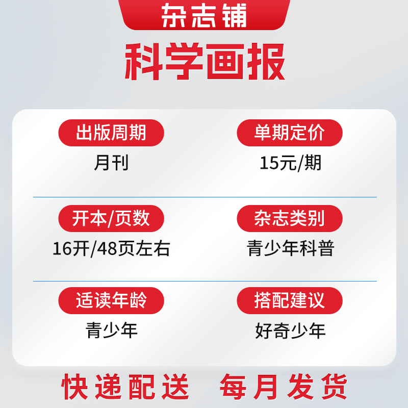 科学画报杂志 2026年1月起订 1年共12期 杂志铺 全年订阅 天文科学 人文科学 科学知识科普 青少年科普期刊杂志书籍订阅