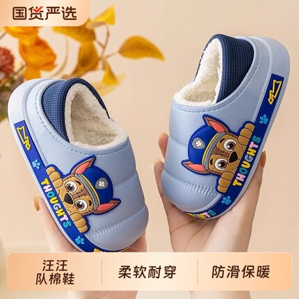 汪汪队儿童棉鞋男童秋冬季防水防滑棉拖鞋女童宝宝新毛毛包跟拖鞋