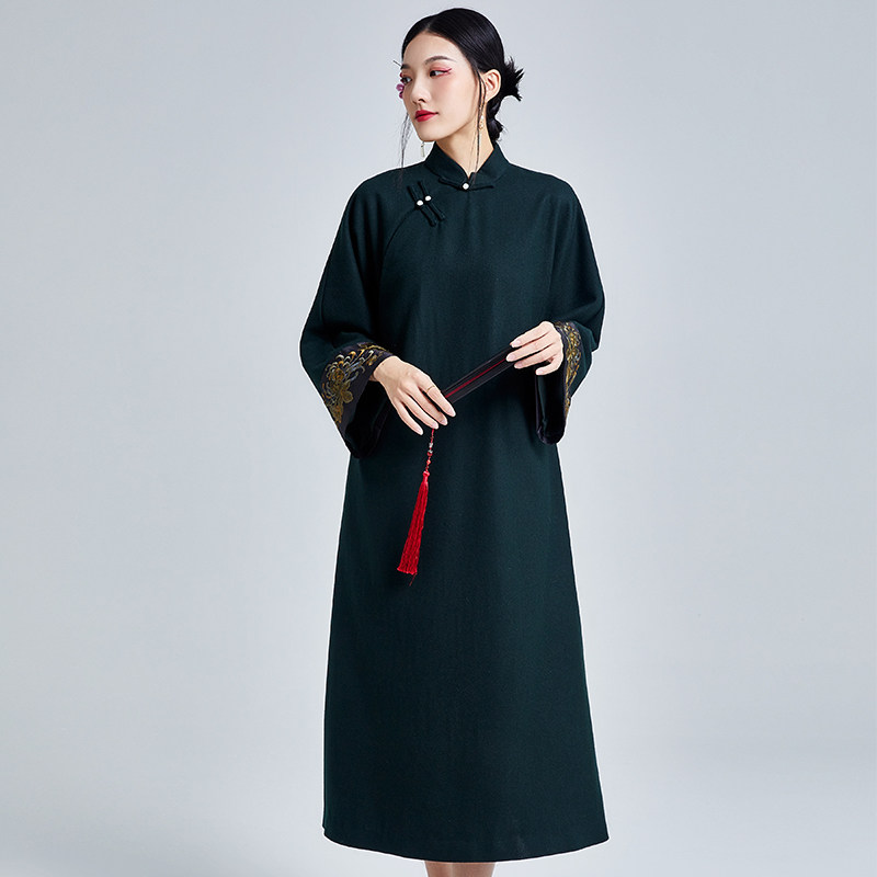 秋季复古风茶服宽松毛呢改良旗袍