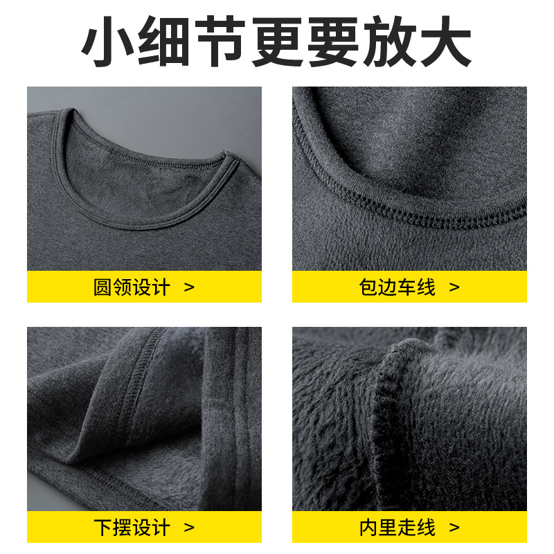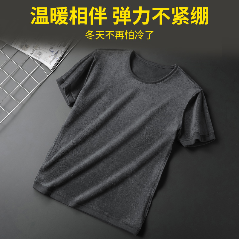 圆领短袖t恤男装秋冬季保暖内衣加绒加厚纯色黑色内搭半袖打底衫