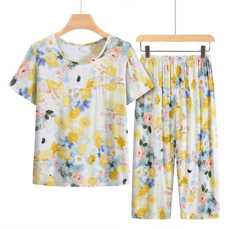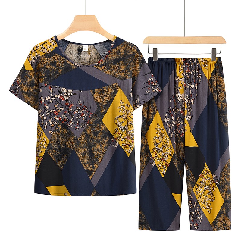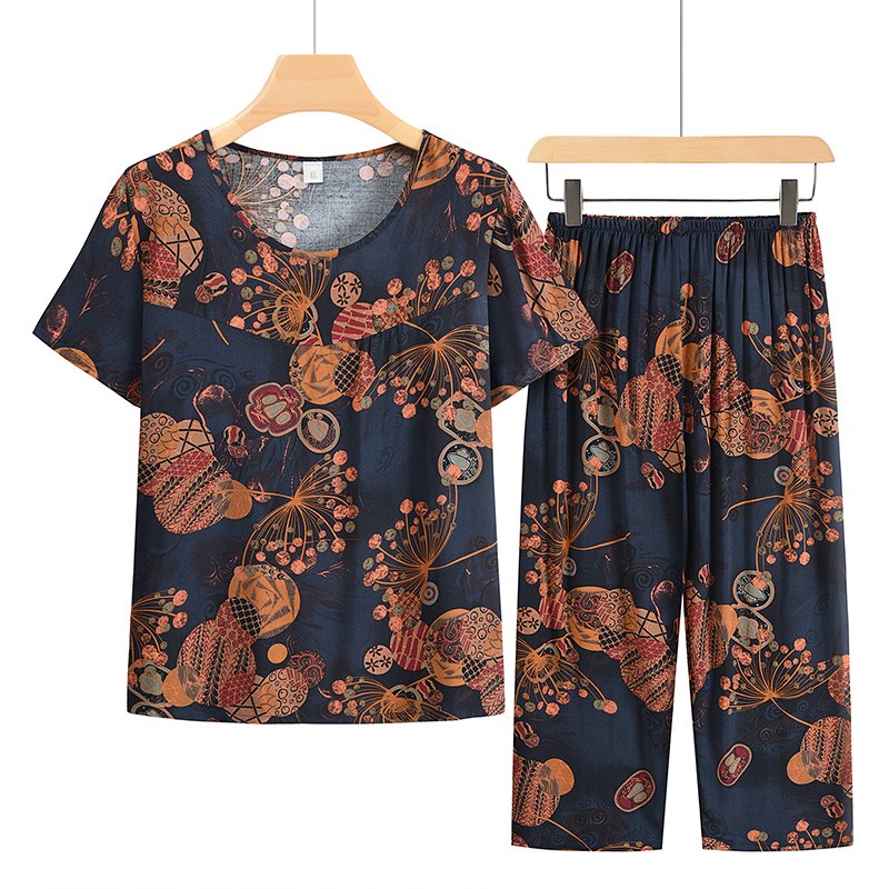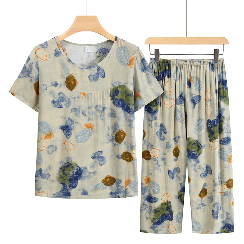 中老年女装妈妈夏装套装2024新款奶奶短袖衣服老年太太绵绸两件套