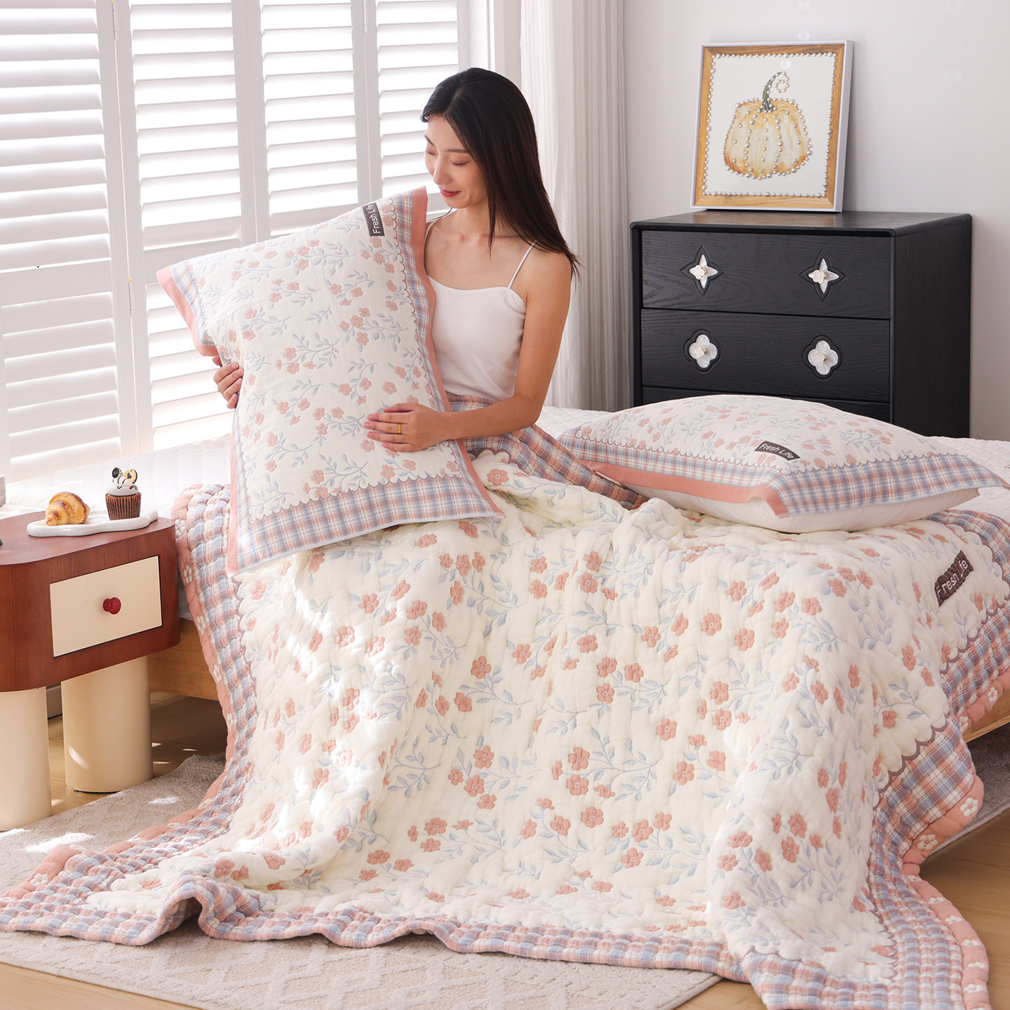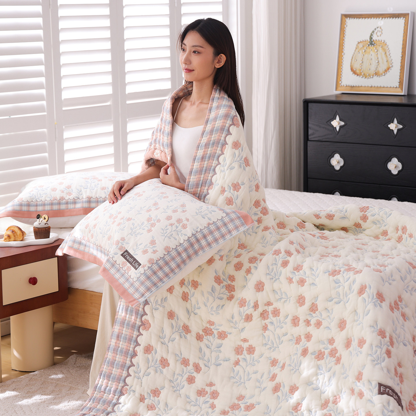 十层加厚纯棉纱布盖毯全棉柔软泡芙被春秋卡通可爱单人沙发毛巾被