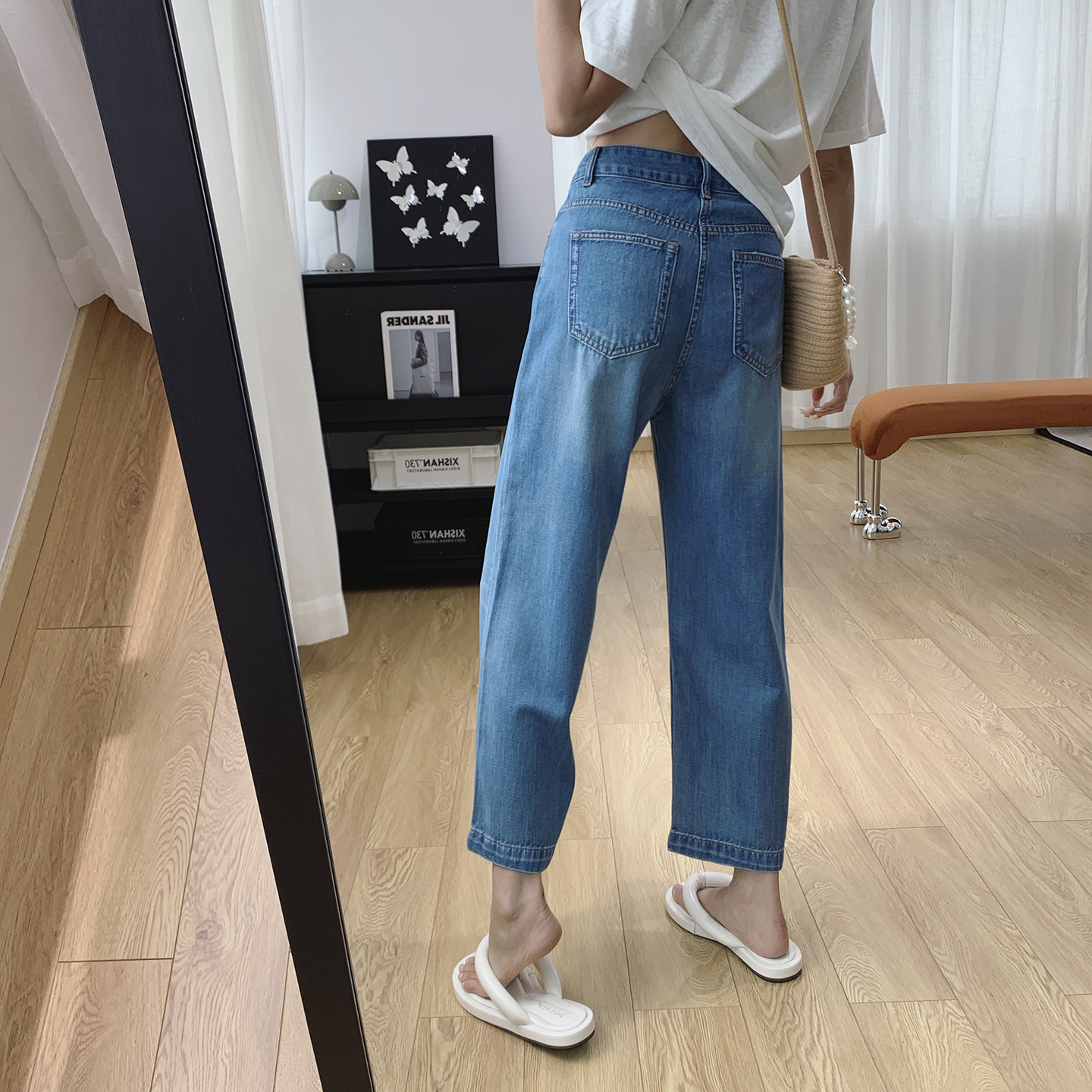 超薄莱赛尔天丝高腰显瘦破洞牛仔裤女夏薄款裤子宽松直筒九分裤薄