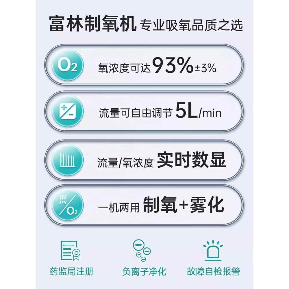 富林制氧机5升L家用老人孕妇吸氧机便携式家庭氧疗保健轻音带雾化