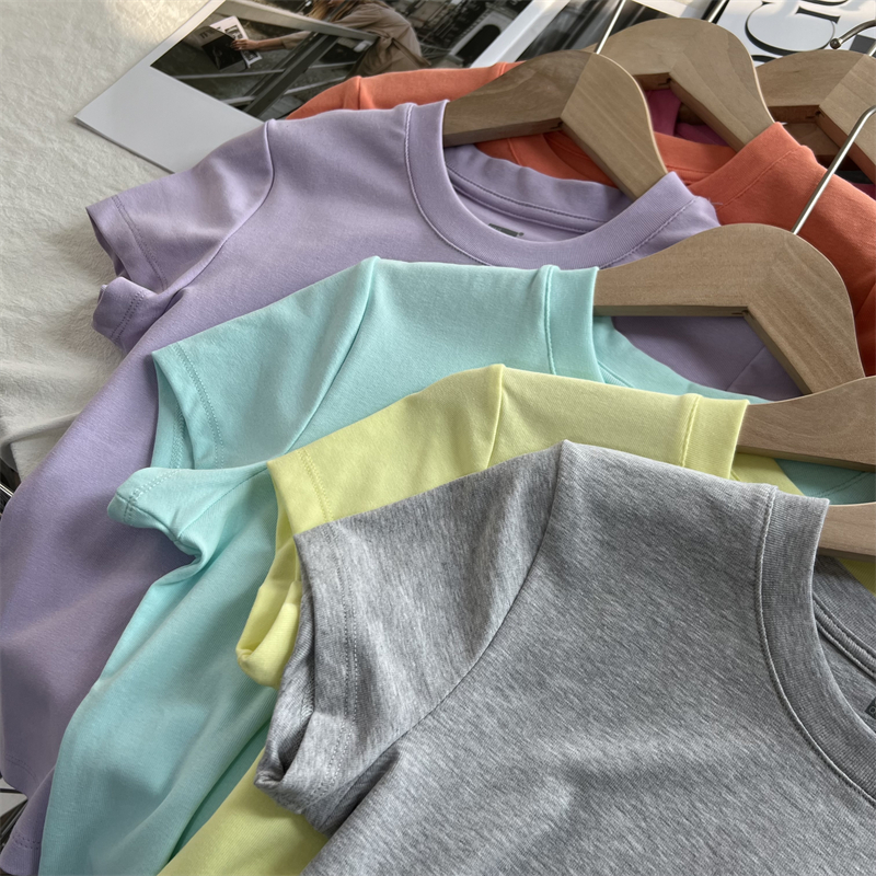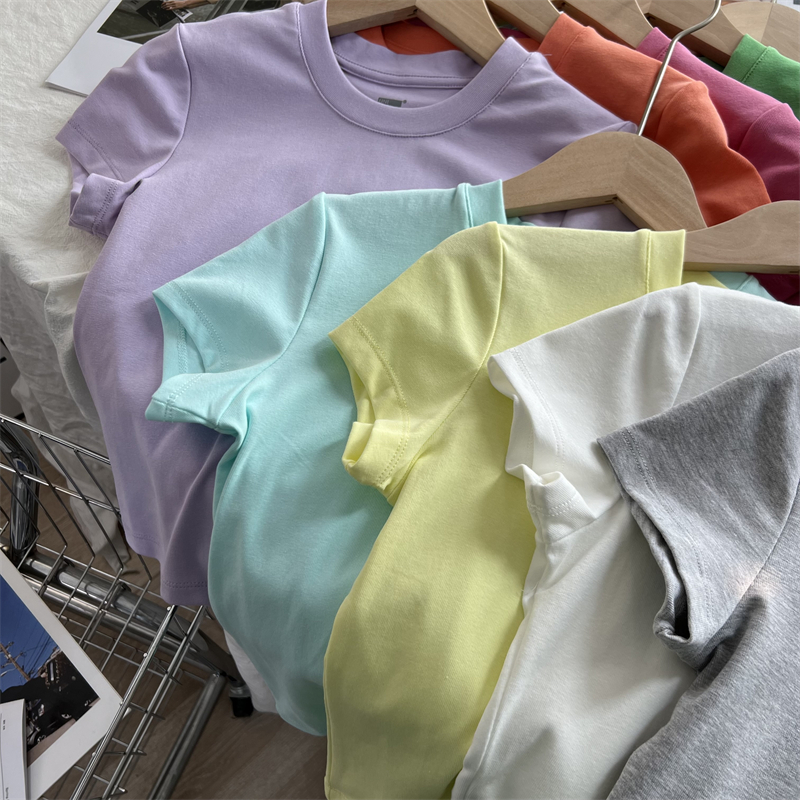 夏季女装辣妹风短款AA打底衫纯棉修身显瘦圆领高腰短袖T恤上衣