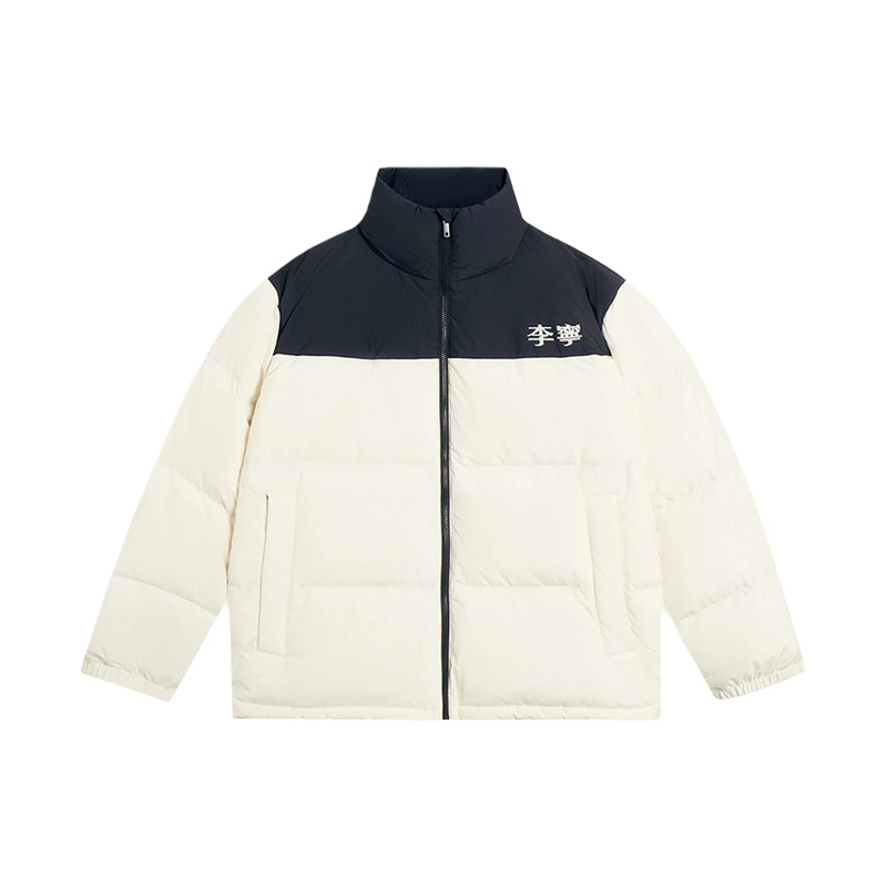 李宁正品新款男女情侣款运动休闲时尚拼色立领保暖羽绒服AYMS307