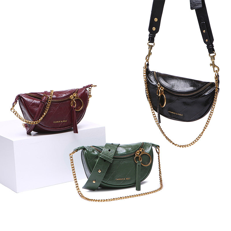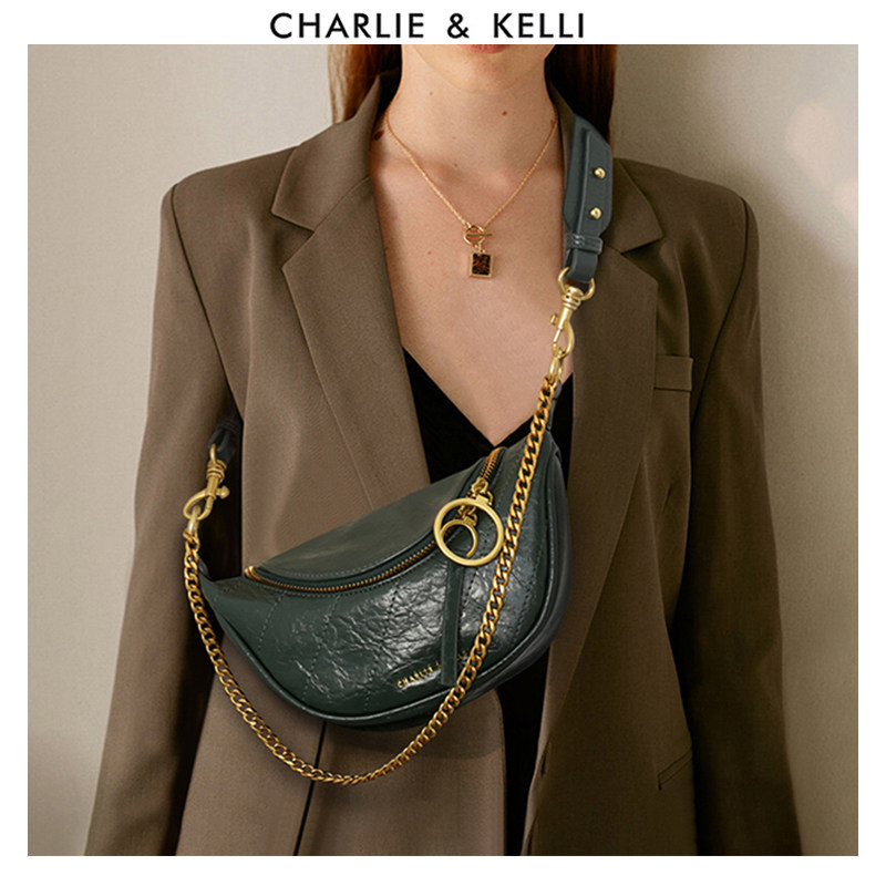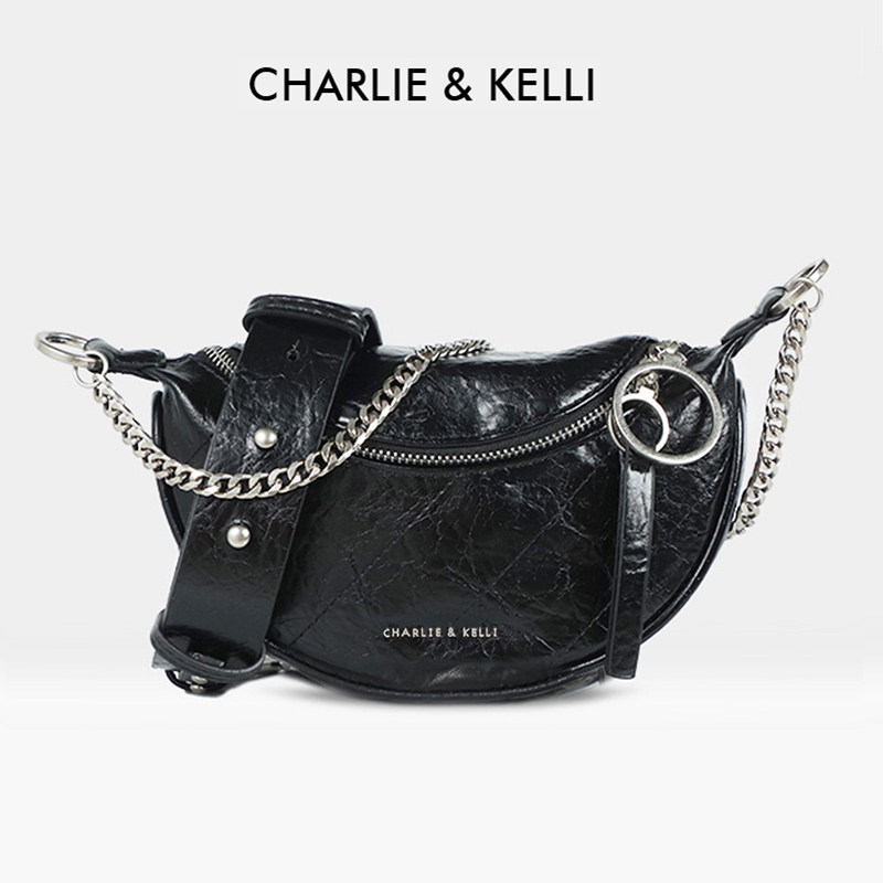 香港小c&k女包包褶皱腰包时尚百搭单肩斜挎链条包胸包旗舰店官网