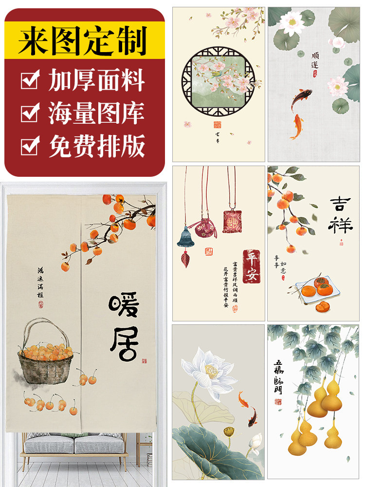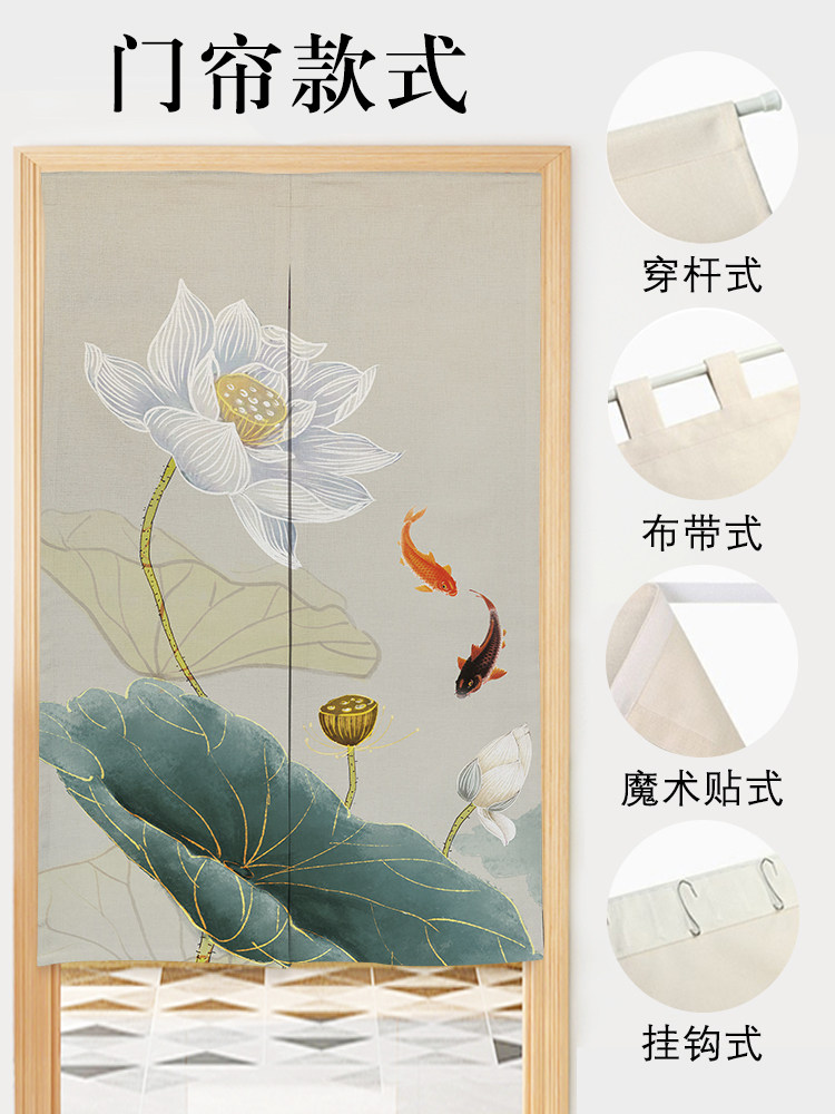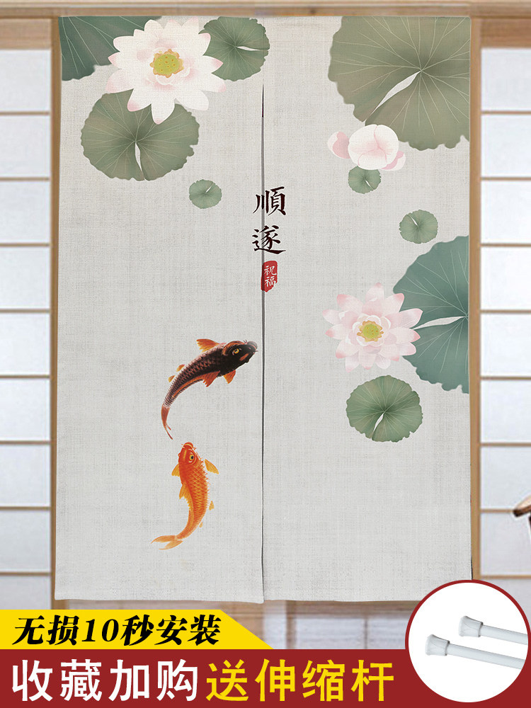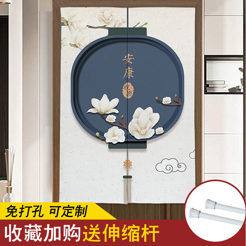 新中式门帘卧室挂帘卫生间隔断帘厨房遮挡帘半帘柜子帘布帘免打孔