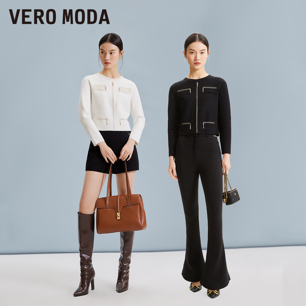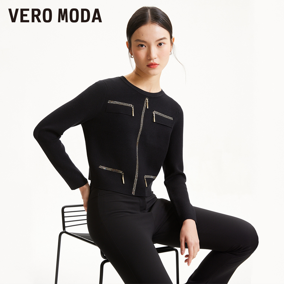 Vero Moda奥莱针织衫女秋冬新款直筒短款通勤简约优雅毛衣上衣
