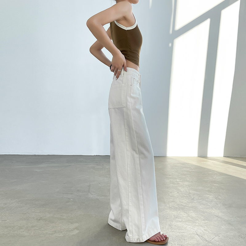 白色阔腿牛仔裤女2025年春季新款高腰宽松显瘦垂感拼接直筒弯刀裤