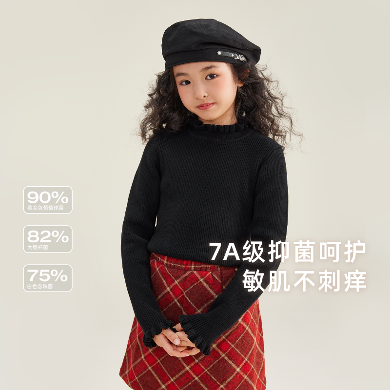 [32支高纱]女童套头打底毛衣大童纯色白色秋冬新款时髦保暖针织衫